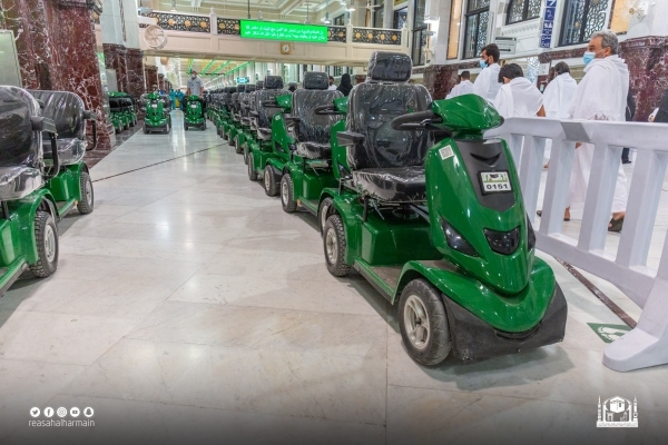وقال سعادة مدير إدارة خدمات التنقل بالمسجد الحرام الأستاذ أحمد المقاطي: إن إدارة خدمات التنقل بالمسجد الحرام خصصت أكثر من (٥٠٠٠) عربة عادية وقرابة (٣٠٠٠) عربة كهربائية لمحتاجيها من المعتمرين وقاصدي المسجد الحرام، من كبار السن والأشخاص ذوي الإعاقة، مما يسهم في التسهيل عليهم في أداء نسكهم بكل يسر وسهولة، حيث تقوم الإدارة بالإشراف على العربات الكهربائية وتأمين العربات العادية ومتابعتهم ميدانياً لضمان التزامهم بالتعليمات.