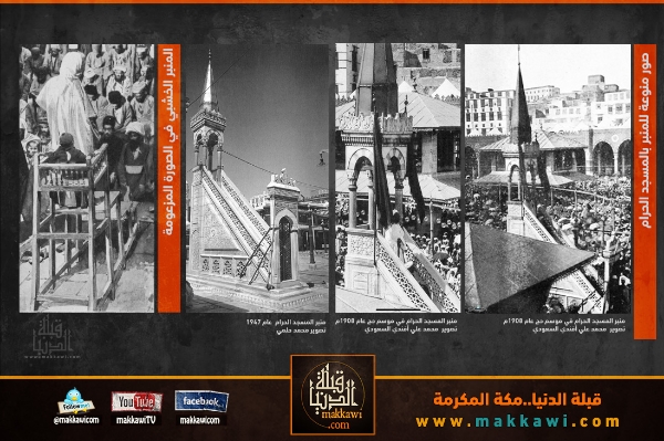 في عام 1908م /1325هـ التقط المصور (محمد علي أفندي السعودي) صورة لمنبر الحرم المكي وقت صلاة الجمعة في موسم الحج والتي نشرت فيما بعد في كتاب (مصور في الحج) والأعلام السوداء منصوبة عليه التي تدل على دخول وقت الصلاة ويظهر اثنين من الأغوات معتلين درجات المنبر أحدهما واقف والآخر جالس وهم في انتظار الخطيب ليقدُم ويلقِ الخطبة .