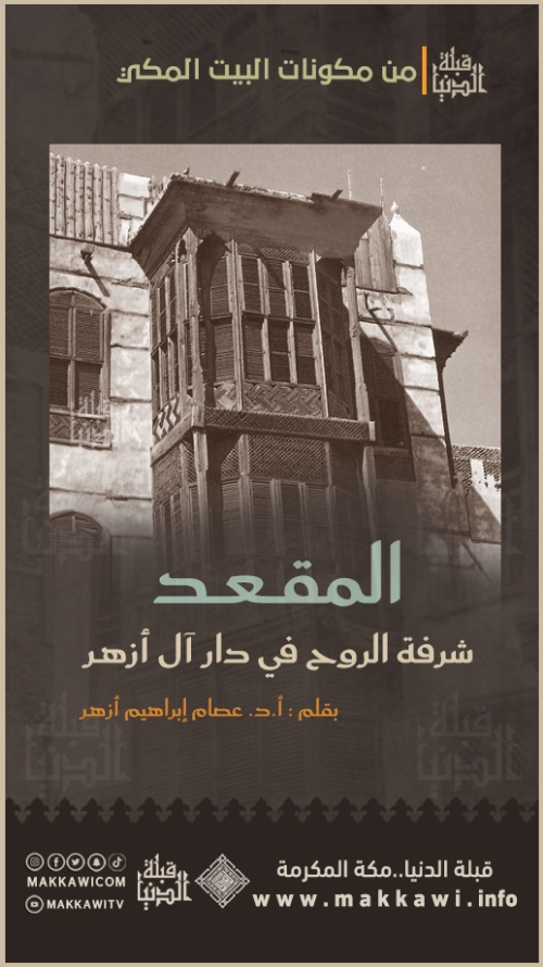 في الدور العلوي من دار أبناء المرحوم أحمد محمد أزهـر رحمهم الله ورحم من تبعهم يرتفع “المقعد” كجوهرة معمارية تطل على الماضي والحاضر معًا. ليس مقعدًا اعتياديًا بل ركنًا ظل عبر عقودٍ طويلة يحمل أحاديث العائلة ويحتضن لحظات الصفاء ويستقبل نسمات مكة المحملة برائحة التاريخ والسكينة.