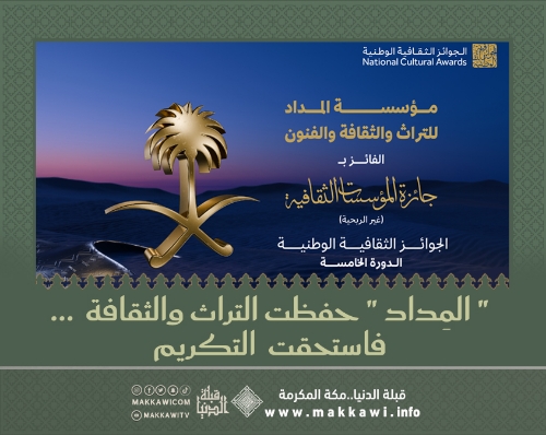تحت رعاية صاحب السمو الملكي الأمير محمد بن سلمان بن عبدالعزيز آل سعود، ولي العهد رئيس مجلس الوزراء حفظه الله، كرّم صاحب السمو الأمير بدر بن عبدالله بن فرحان وزير الثقافة ، مساء الأحد الماضي في مركز الملك فهد الثقافي بالرياض، الفائزين في الدورة الخامسة من مبادرة «الجوائز الثقافية الوطنية» من المؤسسات والشخصيات الثقافية والفنية ، ونالت مؤسسة المِداد للتراث والثقافة والفنون جائزة المؤسسات الثقافية في مسار القطاع غير الربحي لجهودها في تدشين مكتبات وقفية ومتاحف ومعارض ثقافية وفنية ، مثل دار الفنون الإسلامية ، ومشروع خطاط المسجد النبوي ، ومشروع آيات.