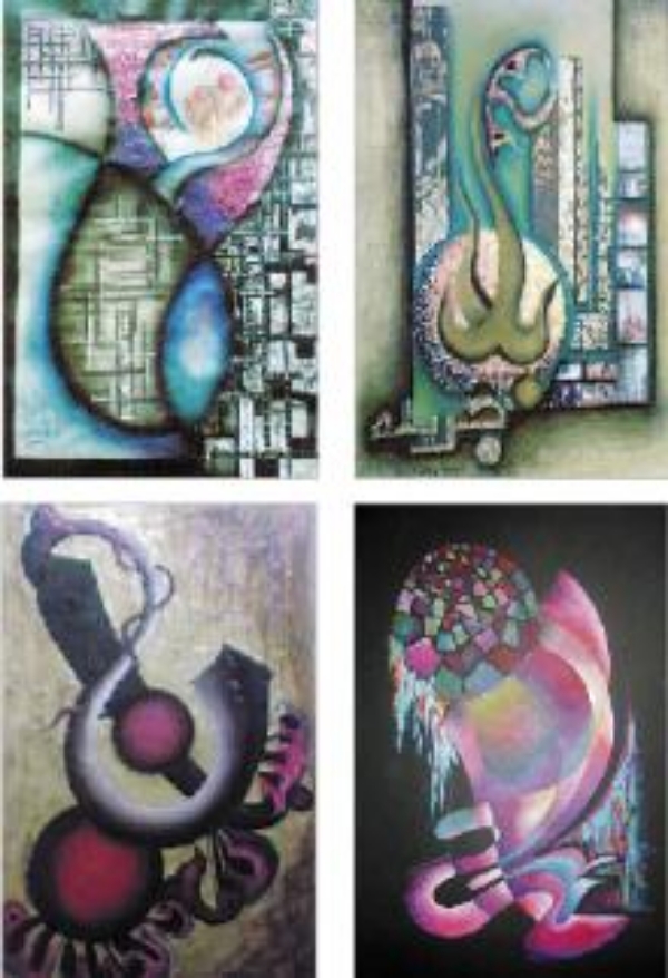 || أعمالي التشكيلية يغلب عليها ذكر اسم الله تعالى والخطوط الانسيابية والأشكال الهندسية أكثر من أي شيء، وأول عمل فني قمت به رسم جدارية في الجامعة مقاس الجدارية 200* 160 كان عنوانها: (سبحان الله والحمد لله) ووجدت تشجيعا من قبل الأهل ومن الجامعة.