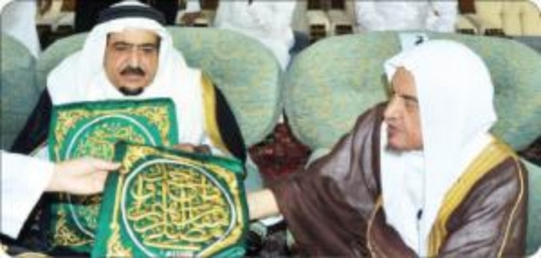 سلم الرئيس العام لشؤون المسجد الحرام والمسجد النبوي الشريف الشيخ صالح بن عبدالرحمن الحصين مساء امس الأحد كسوة