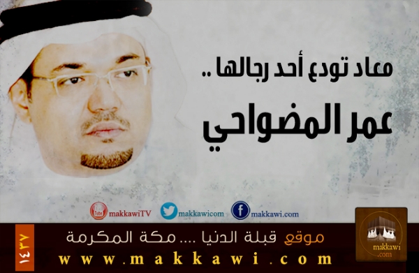 انتقل الى رحمة الله اليوم الاحد 1437/3/9هـ الاعلامي الاستاذ عمر المضواحي نسأل الله أن يتغمده بواسع رحمته ويلهم أهله وذويه ومحبيه الصبر والسلوان و ستكون الصلاة عليه في المسجد الحرام عقب صلاة الظهر والدفن في المعلاه .