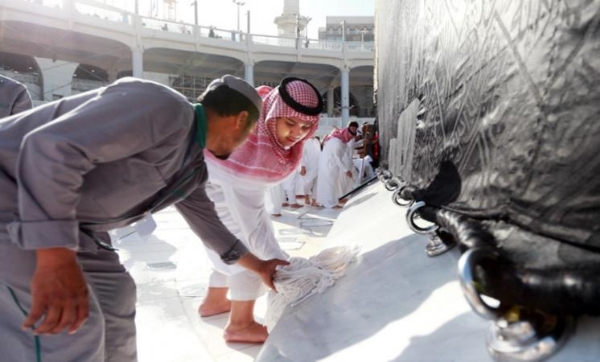 35 طالباً بـ مكة المكرمة يغسلون صحن المطاف