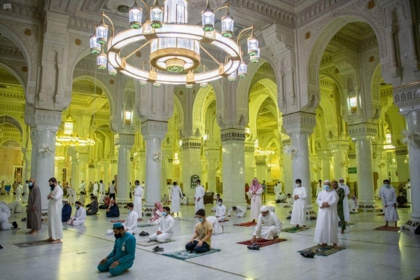 المواطنون والمقيمون يؤدون صلاة الفجر في المسجد الحرام مع بدء المرحلة الثانية من العودة التدريجية من داخل المملكة لأداء مناسك العمرة والصلاة