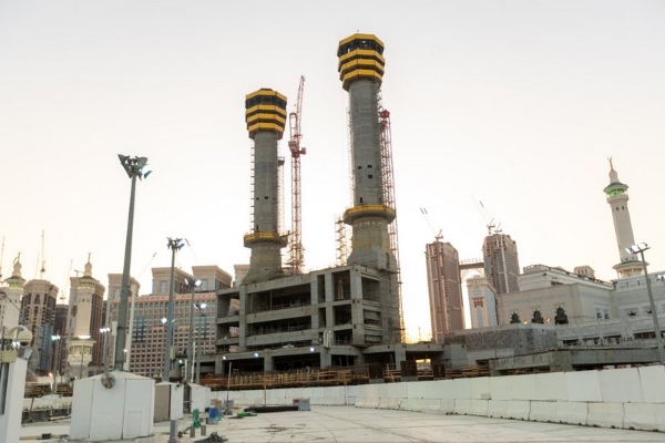 تكثيف إنشاءات 6 منارات بالمسجد الحرام خلال الجائحة