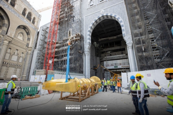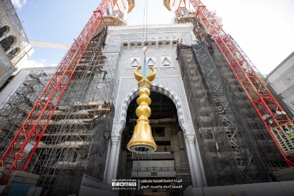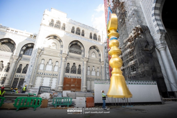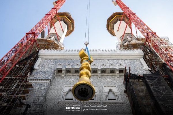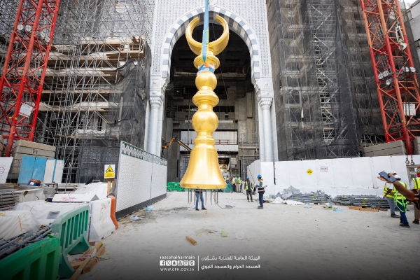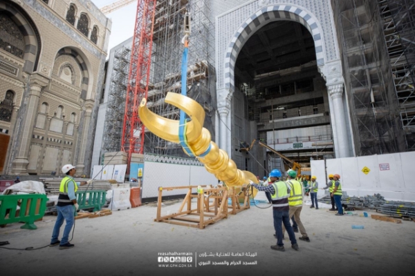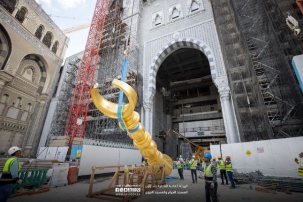 وأردف: ويأتي ضمن الأعمال الإنشائية بالمسجد الحرام، تركيبُ هلال منارة باب الفتح الذي يعتبر آخر هلال يتم تركيبه؛ حيث يتجاوز طولُ المنارة أكثرَ من "130" مترًا، ويصل ارتفاع الهلال ما يقارب "9" أمتار، وقاعدته بعرض مترين.