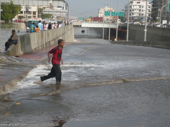 وبدا المنظر في بعض حواري جنوب جدة، وكأنك تشاهد قرية من قرى اندونيسيا تغرق في فيضانات حيث غطت الأمطار والسيول شوارع حي الكندرة وما جاوره، واحتجزت بعض قاطني هذه الأحياء داخل منازلهم.